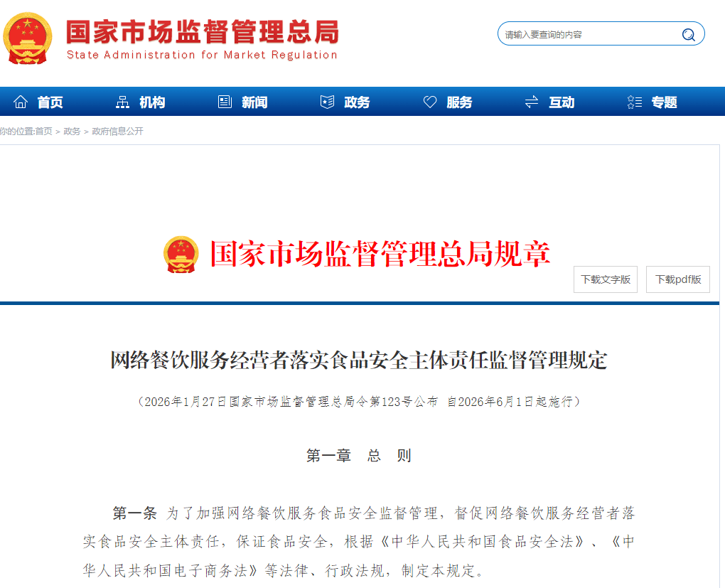 为压实收集运营从体义务,市场监管总局近期聚焦收集餐饮取食物发卖制定两项:《收集餐饮办事运营者落实食物平安从体义务监视办理》和《收集食物发卖运营者落实食物平安从体义务监视办理》,两项新规剑指“鬼魂外卖”虚假宣传等,守护消费者的“舌尖平安”,别离于2026年6月1日和2026年5月20日施行。